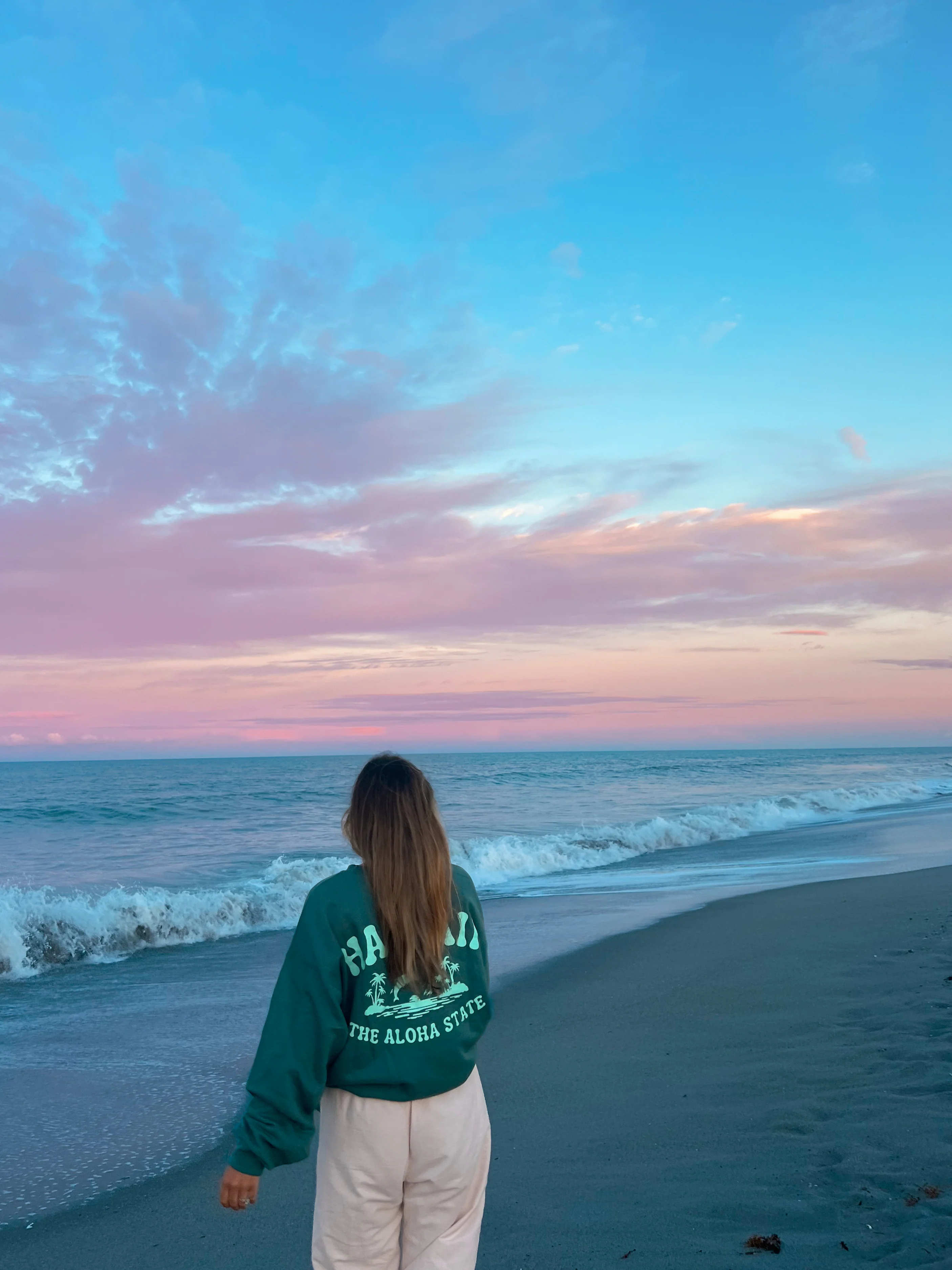 The grooviest crewneck! The front is a puffy print, adding texture and dimension, with a large matching screen-printed design on the back.